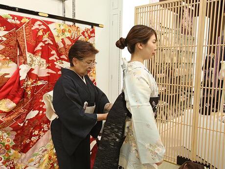 「着物に詳しくなくても大丈夫と聞いて応募しました。実際、最初は覚えることもありましたが、働きながら自然と知識が身につきました。結婚式や成人式のコーデ提案ができるようになると、お客様の笑顔が励みになります。」